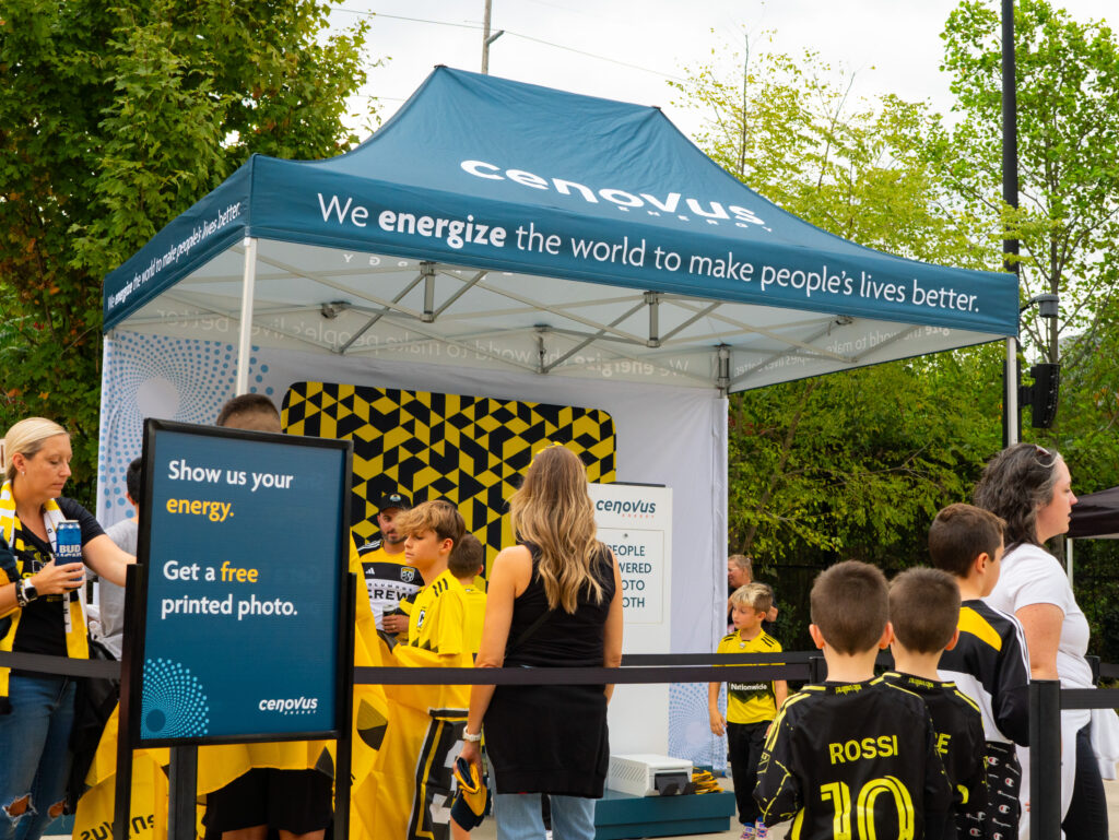 As a Title Night Sponsor of the Columbus Crew, Cenovus Energy aimed to create a standout activation that would both entertain fans and reinforce the brand’s innovative spirit. EMS brought that vision to life on the bustling Chase Plaza, delivering an experience that became one of the most talked-about moments of the night. At the center of the activation was the Energy Floors experience – a kinetic, interactive setup that allowed fans to generate energy with every jump. As guests hopped, stomped, and danced across the illuminated tiles, their movement powered a complimentary printed photo. Unforgettable. Interactive. Energizing. Uniquely Cenovus.