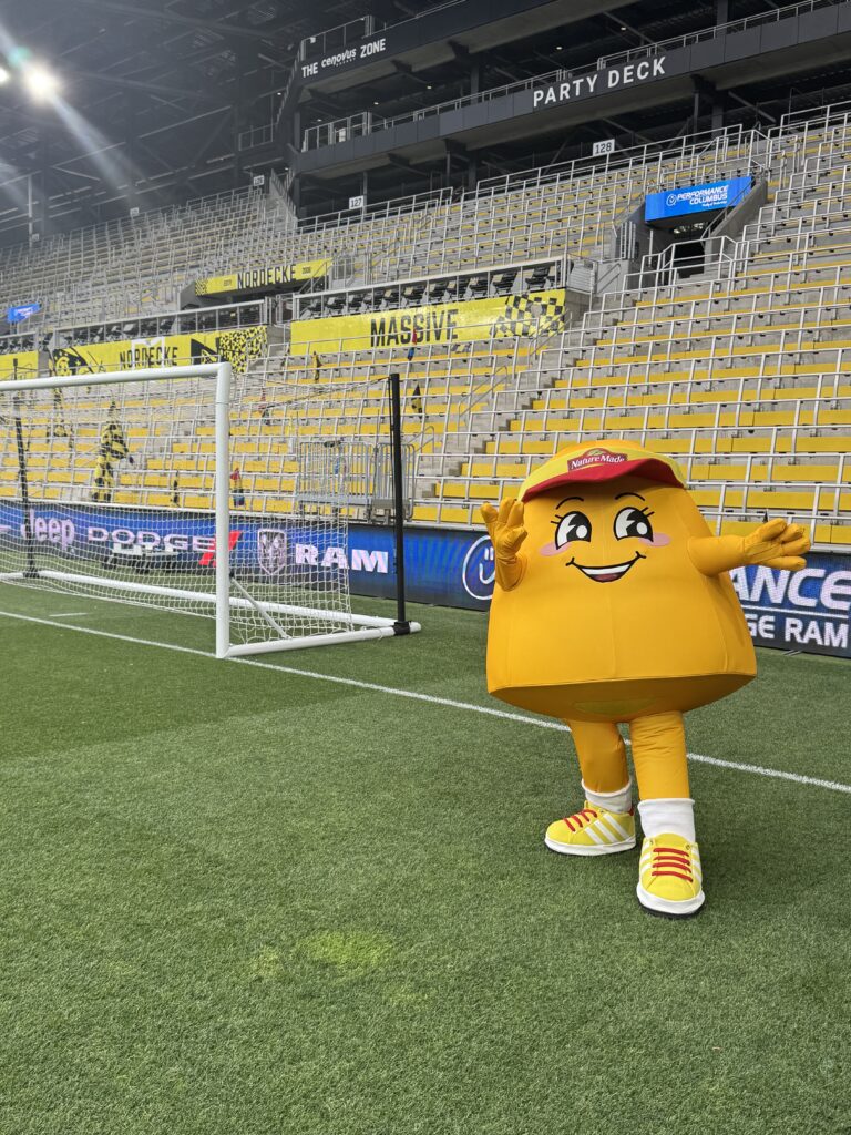 To debut Sunny the Gummie Vitamin, its cheerful new brand mascot, Nature Made partnered with EMS to create an unforgettable introduction during the company’s Title Night at the Columbus Crew match. EMS supported the rollout from concept through execution, beginning with the creation and production of the custom mascot costume, ensuring Sunny’s design reflected Nature Made’s playful, health-first identity. Sunny made appearances across Chase Plaza, delighting fans with high-fives, photos, and dance moves that quickly made the character a crowd favorite. During the match, EMS supported Sunny’s participation in the in-game entertainment experience, helping choreograph interactions that energized the stadium and maximized brand visibility. Sunny the Gummie didn’t just debut; she stole the show.